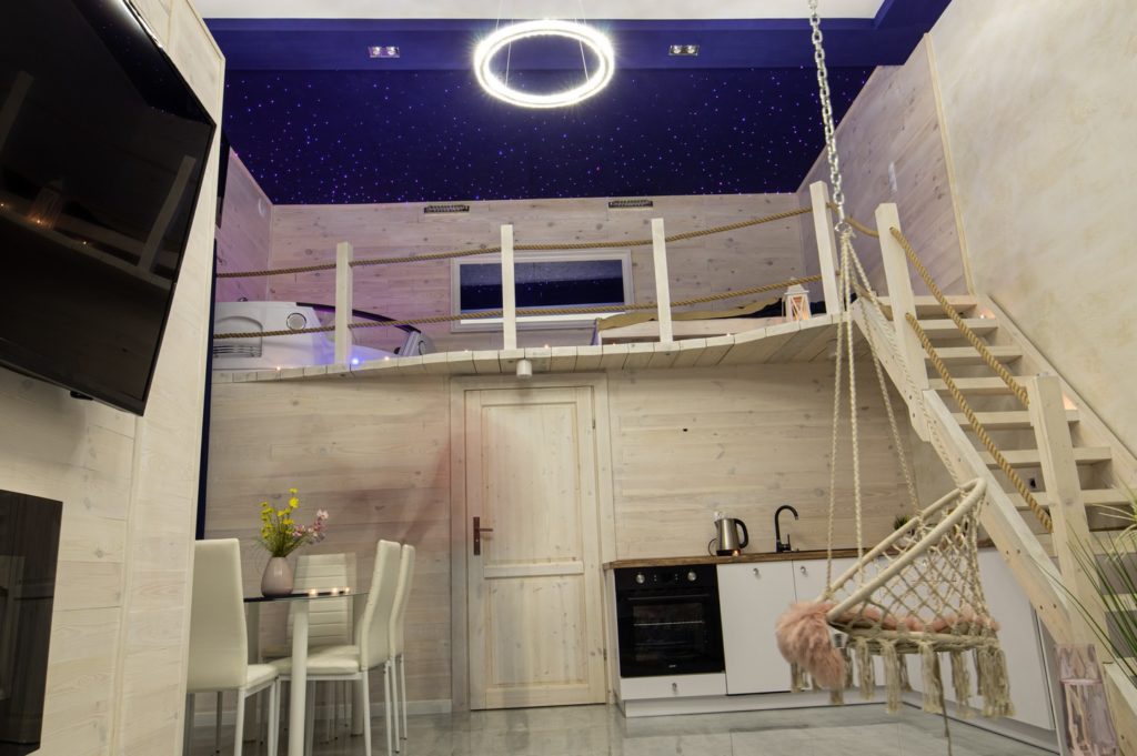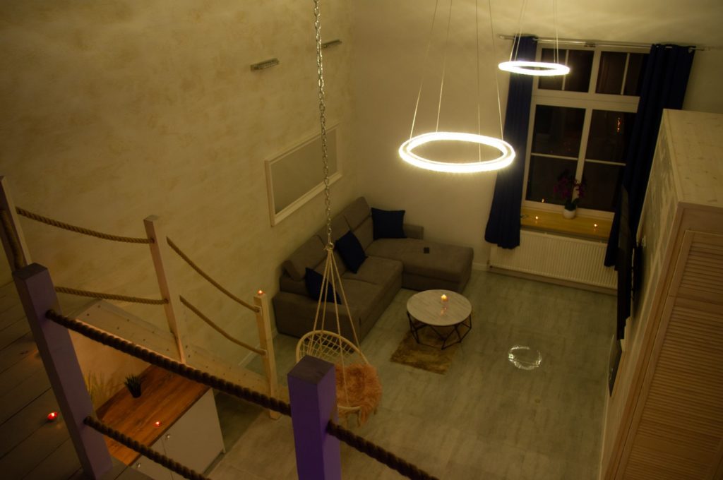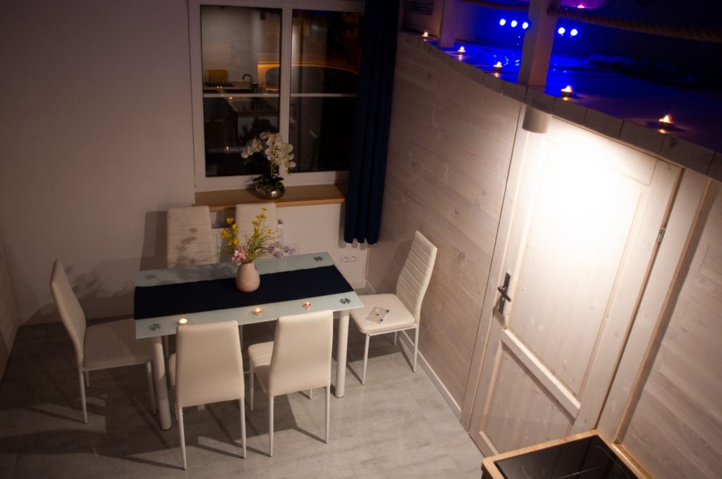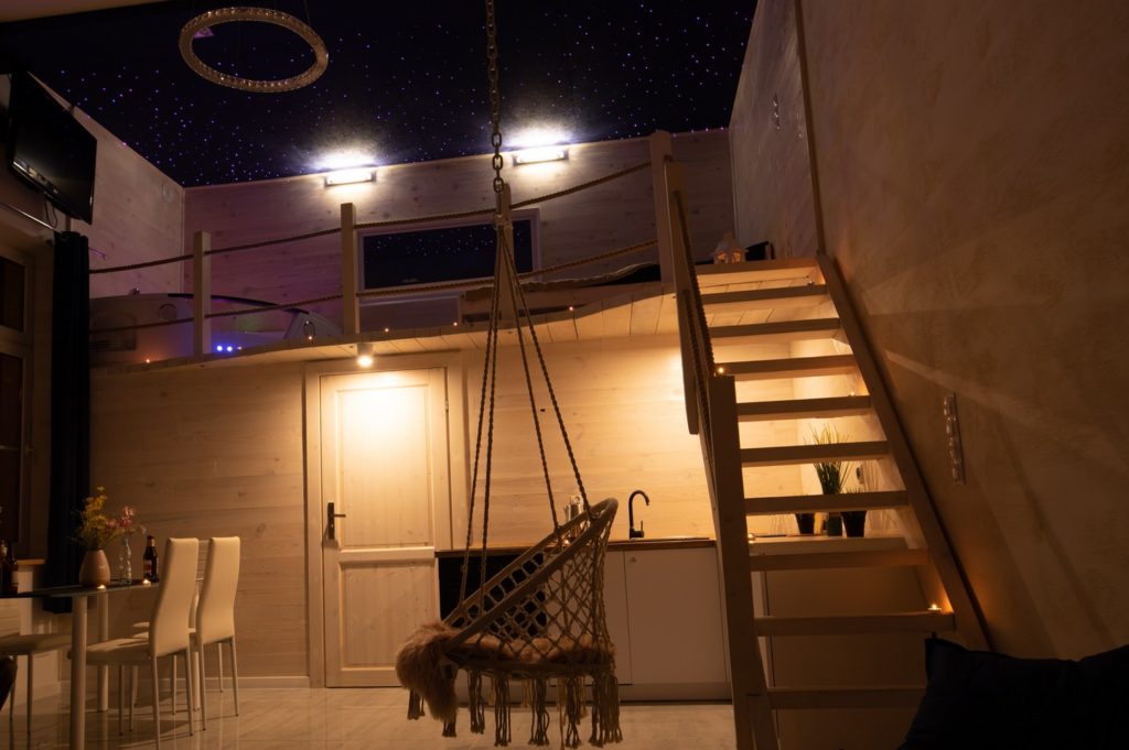 Zapewniamy naszym Gościom niezapomniane chwile relaksu i wygody. Antresola stanowi przytulne miejsce do spania lub relaksu, dodając uroku naszemu apartamentowi. Oferujemy szereg luksusowych udogodnień. W tym klimatyzację zapewniającą optymalną temperaturę, saunę idealną do relaksu i odprężenia oraz jacuzzi zapewniające luksusowe doznania. Nie czekaj, dokonaj rezerwacji już teraz!