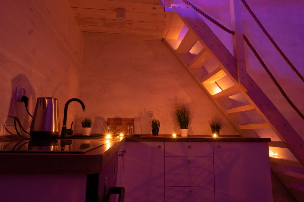 Nasz apartament wyposażony jest w pełni funkcjonalną kuchnię ze zmywarką, piekarnikiem i lodówką, co pozwala Gościom na przygotowywanie własnych posiłków. Dodatkowo, bio kominek dodaje uroku i ciepła do atmosfery apartamentu, a telewizor 60′ oraz szybkie Wi-Fi zapewniają rozrywkę i dostęp do Internetu.